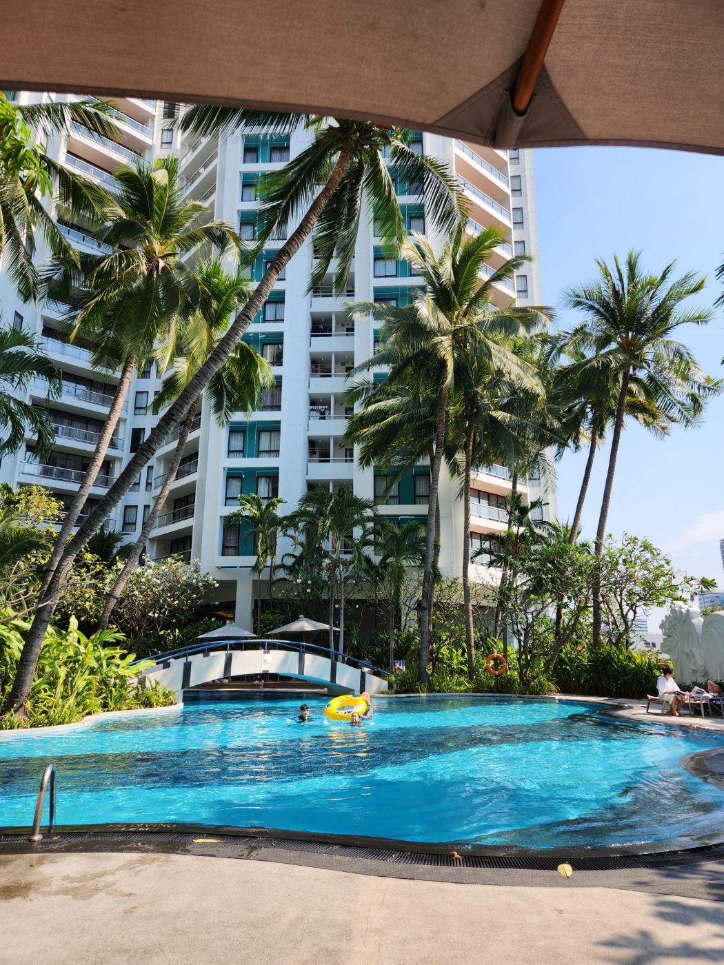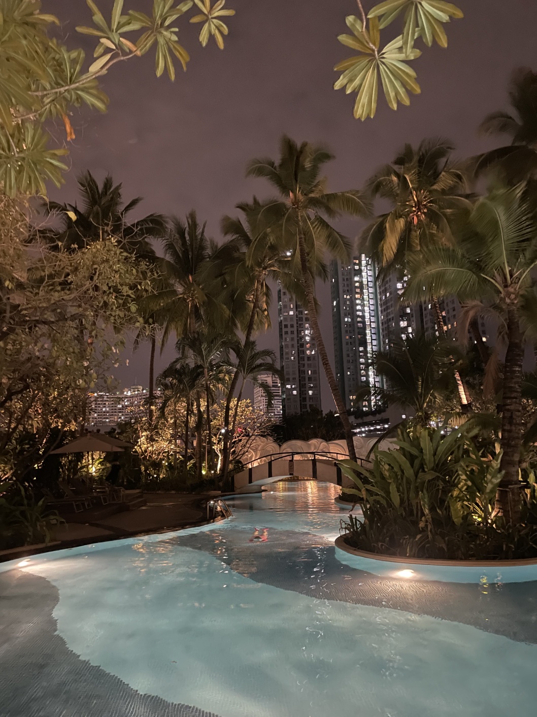 저희 숙소는 16층이었고 수영장 뷰라 아들과 밤 수영을 하러 나갔습니다. 수영장 조명이 너무 예뻐서 분위기에 취하는 기분이었습니다. 이 맛에 여행오지 싶습니다. 4층에 위치한 수영장은 헬스장과 식당이 연결되어 있고 타올은 수영장 곳곳에 비치되어 있어서 사용하기 편했습니다.