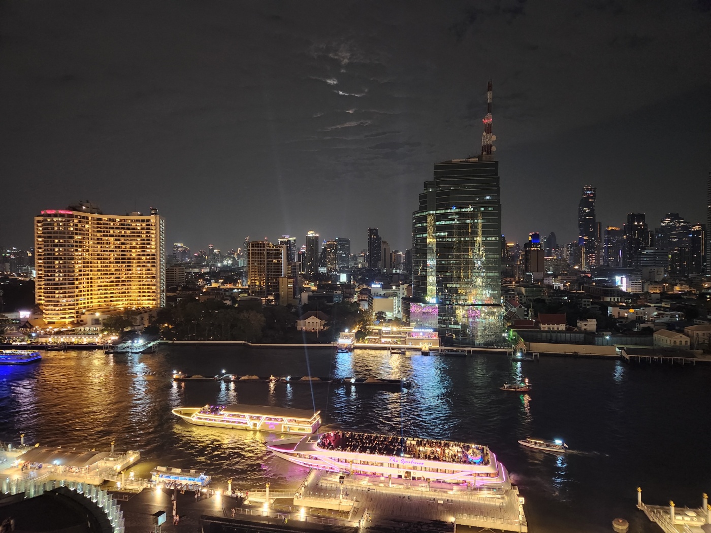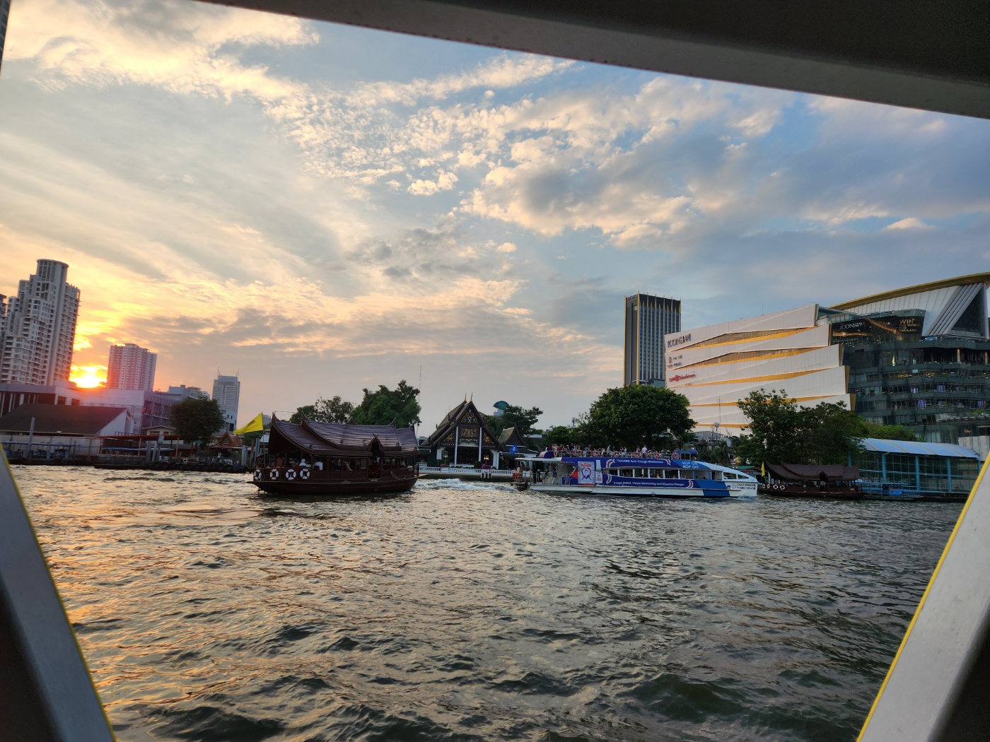 망고빙수를 먹고 7층 나팔라이테라스에 갔어요. 여기 숨겨진 명소 같아요. 짜오프라야강을 바라보며 유람선도 보고 사진도 찍고 너무 아름다웠어요. 아이콘 시암은 방콕의 야경을 즐길 수 있는 복합 쇼핑몰로, 다양한 음식점과 상점이 있어서 알차게 또 하루를 보냈습니다.