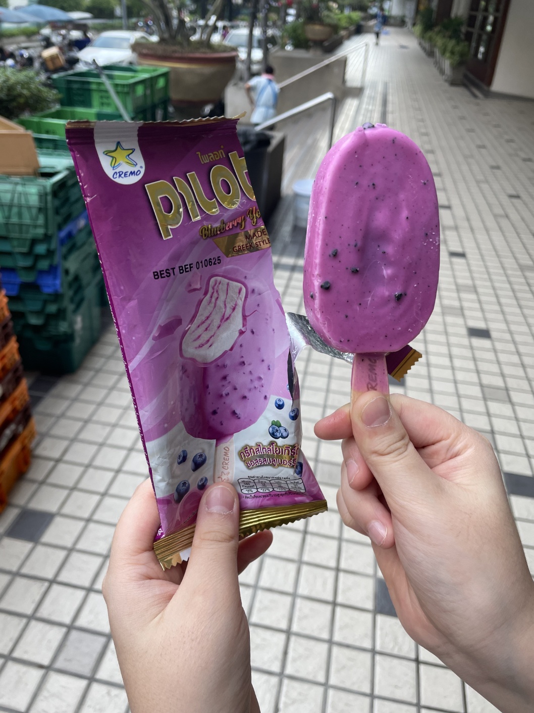 빅씨마트 건너편에서 그랩을 기다리면서 바나나 로띠를 샀어요. 방콕에 왔으면 로띠는 꼭 먹어야지요. 도심지라 그런지 숙소 근처보다 비쌌지만, 여행은 먹는 재미가 큰 비중을 차지하니까 쿨하게 주문했습니다.