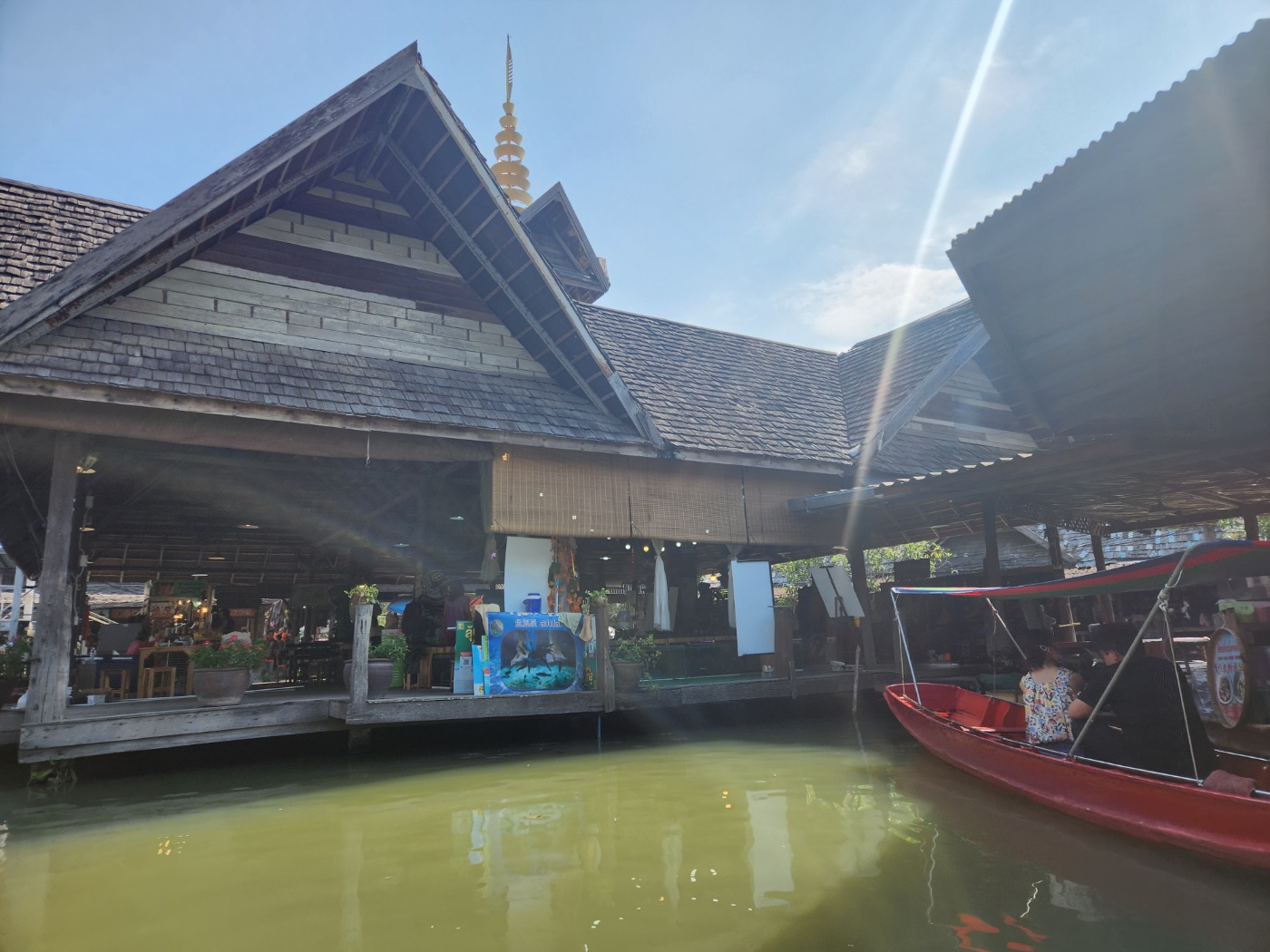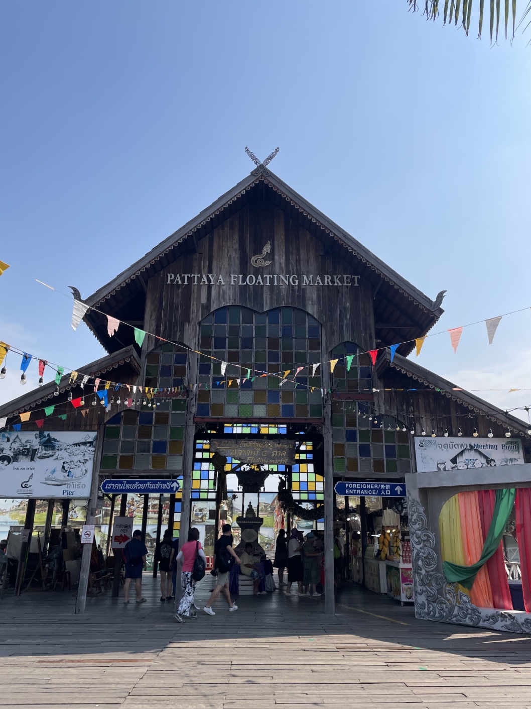 파타야 투어 예약이 되어있어서, 아침 일찍 조식을 먹고 8시에 숙소 로비에서 가이드 기사님을 만났습니다. 방콕에서 2시간을 달려 파타야에 도착했습니다. 첫번째 장소인 파타야 수상 시장은 전통 태국 시장의 분위기를 느낄 수 있는 곳으로, 다양한 음식과 기념품을 판매합니다. 수상 보트는 꼭 타보시길 추천 드립니다. 보트에서 내려서 시장을 거닐며 현지 음식을 맛보고 쇼핑을 즐기세요. 간식과 음료, 옷, 장난감을 파는 곳들과 식사를 할 수 있는 식당도 있습니다. 더워서 아이들에게 음료를 사주고, 타이티와 카놈찐이라는 간식을 사먹으면서 여유있게 구경했습니다.