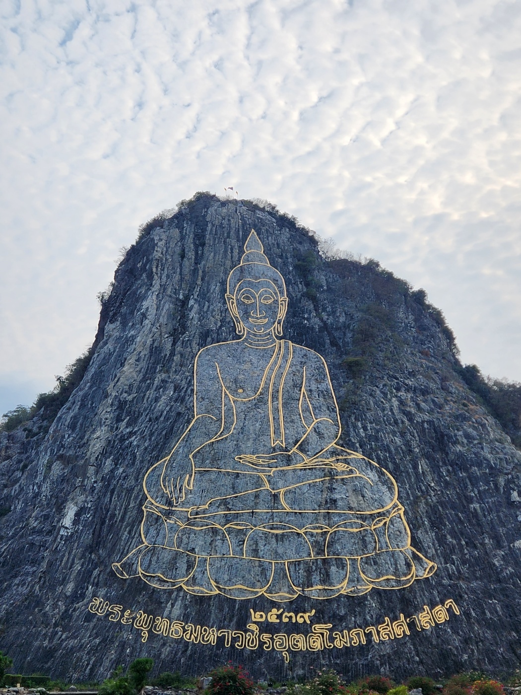 왓 카오치찬이라는 곳으로 이동했어요. 세계에서 가장 큰 황금 절벽 사원을 한 번에 담을 수 있는 포토존이 있어서 가족들 모두 인증 사진 잘 찍고왔습니다.